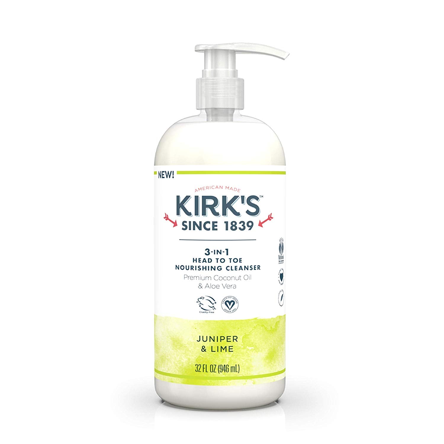 KIRKS - 3-in-1 Head To Toe Nourishing Cleanser, Juniper & Lime - 32 fl. oz. (946 ml)